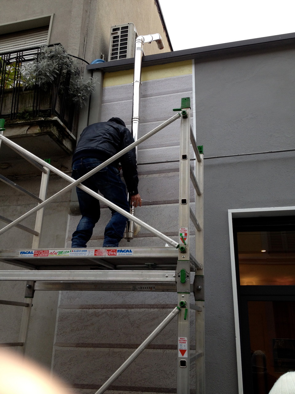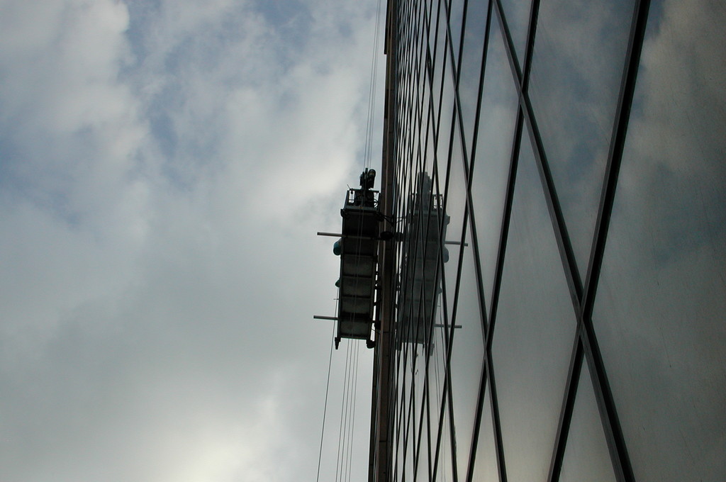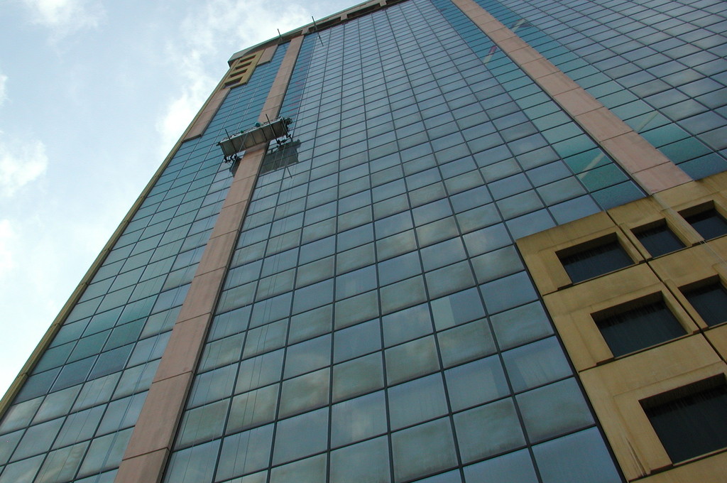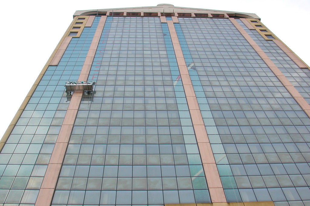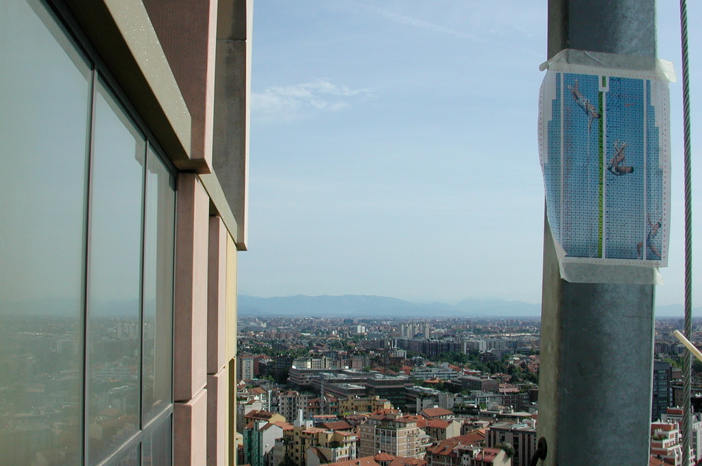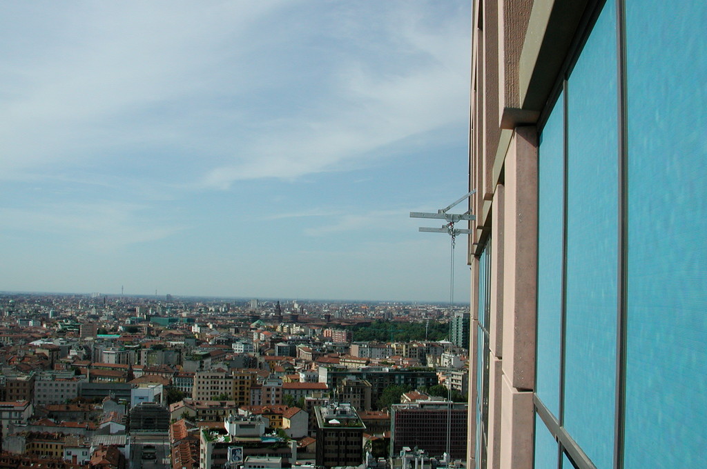 Allestimento pubblicitario su facciata palazzo Garibaldi Milano, effettuato con piattaforme aeree.